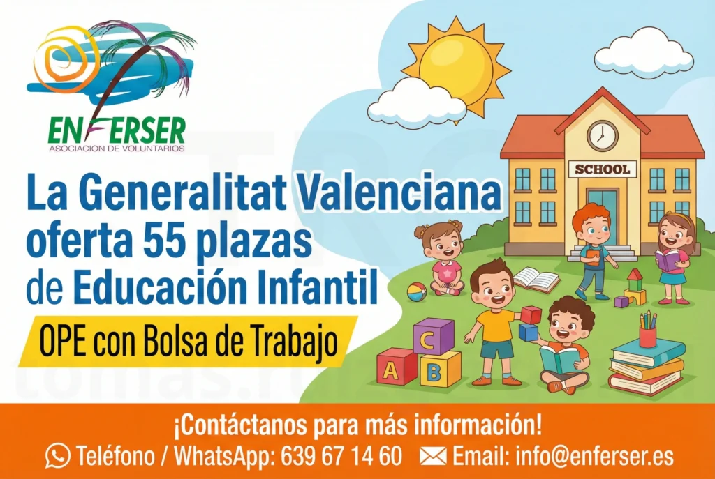 La Generalitat Valenciana oferta 55 plazas de Educación Infantil. OPE con Bolsa de Trabajo.
